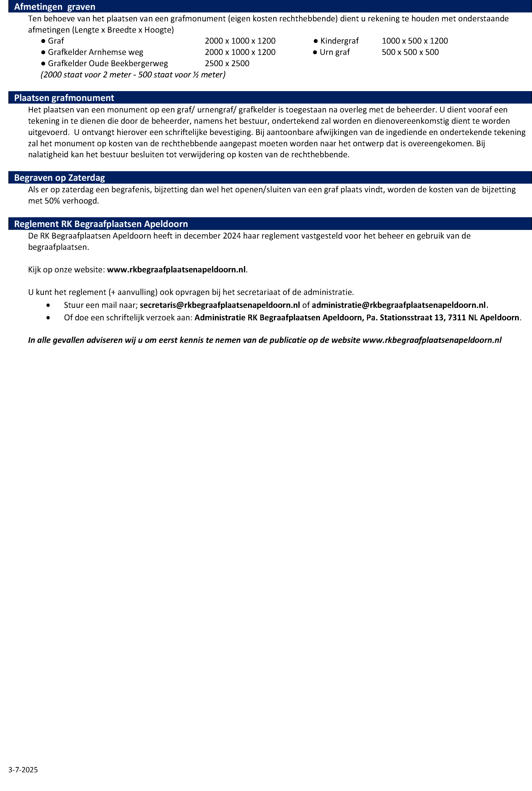 Hieronder vindt u de tarievenlijst 2025 van de R.K. Begraafplaatsen Apeldoorn.
